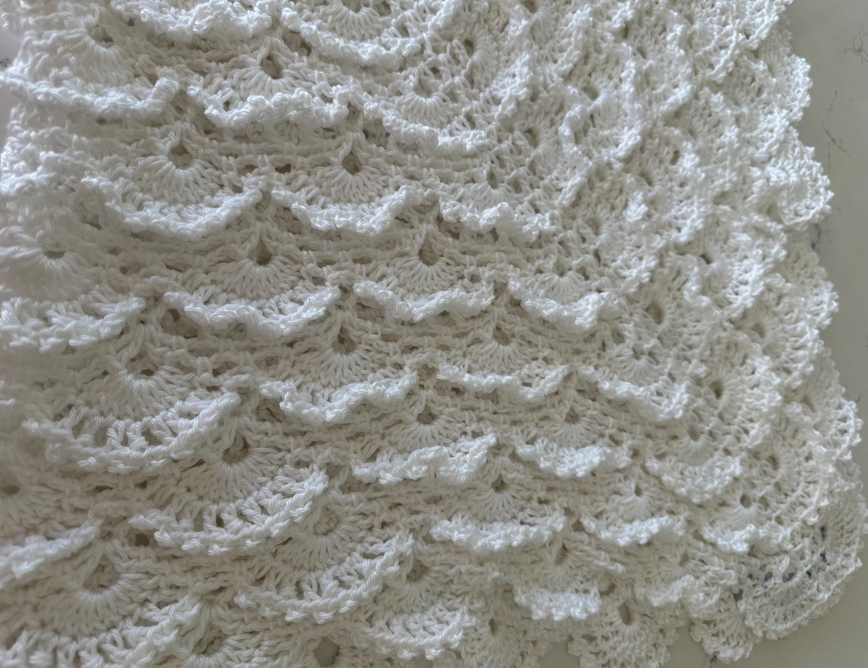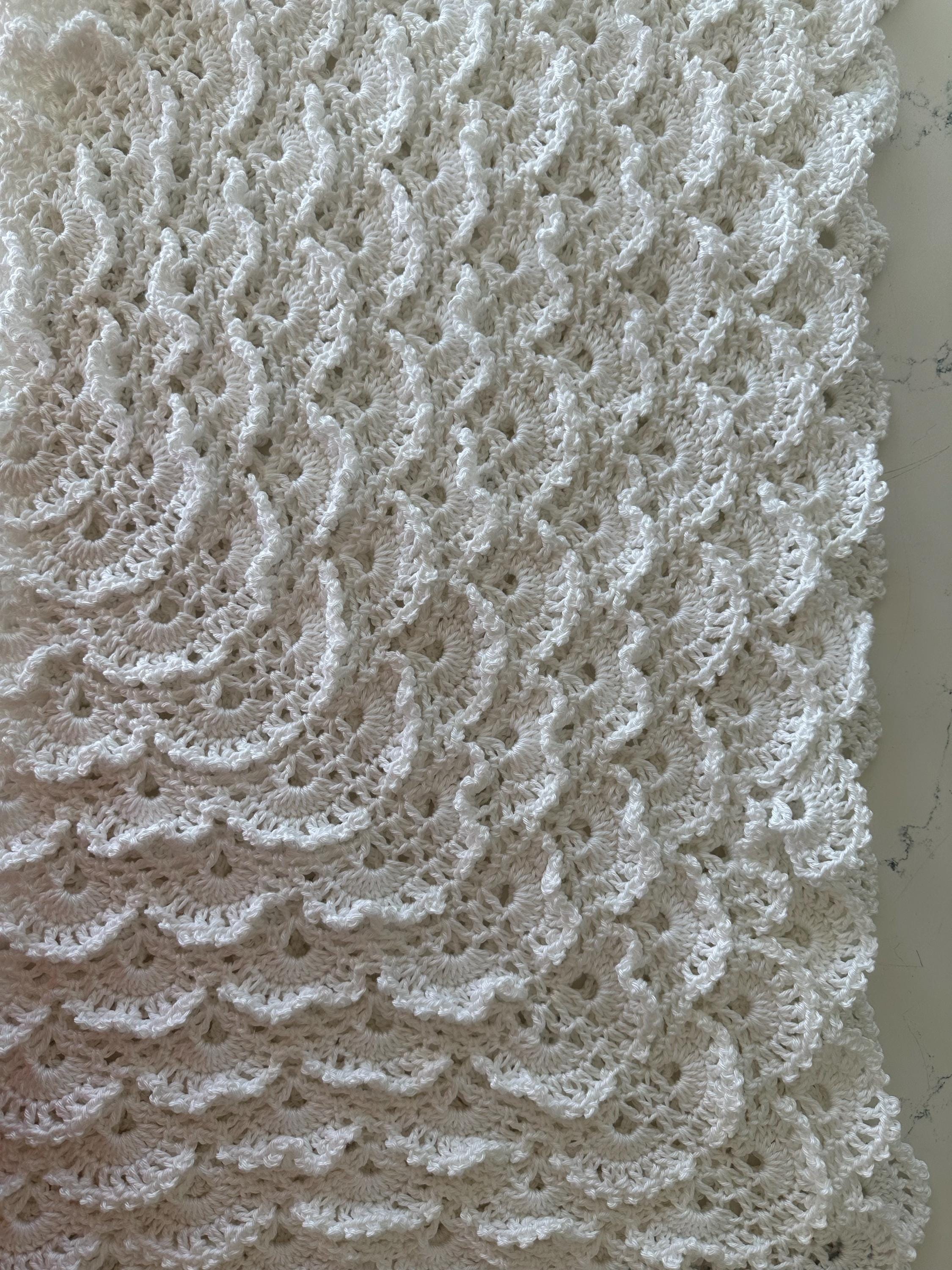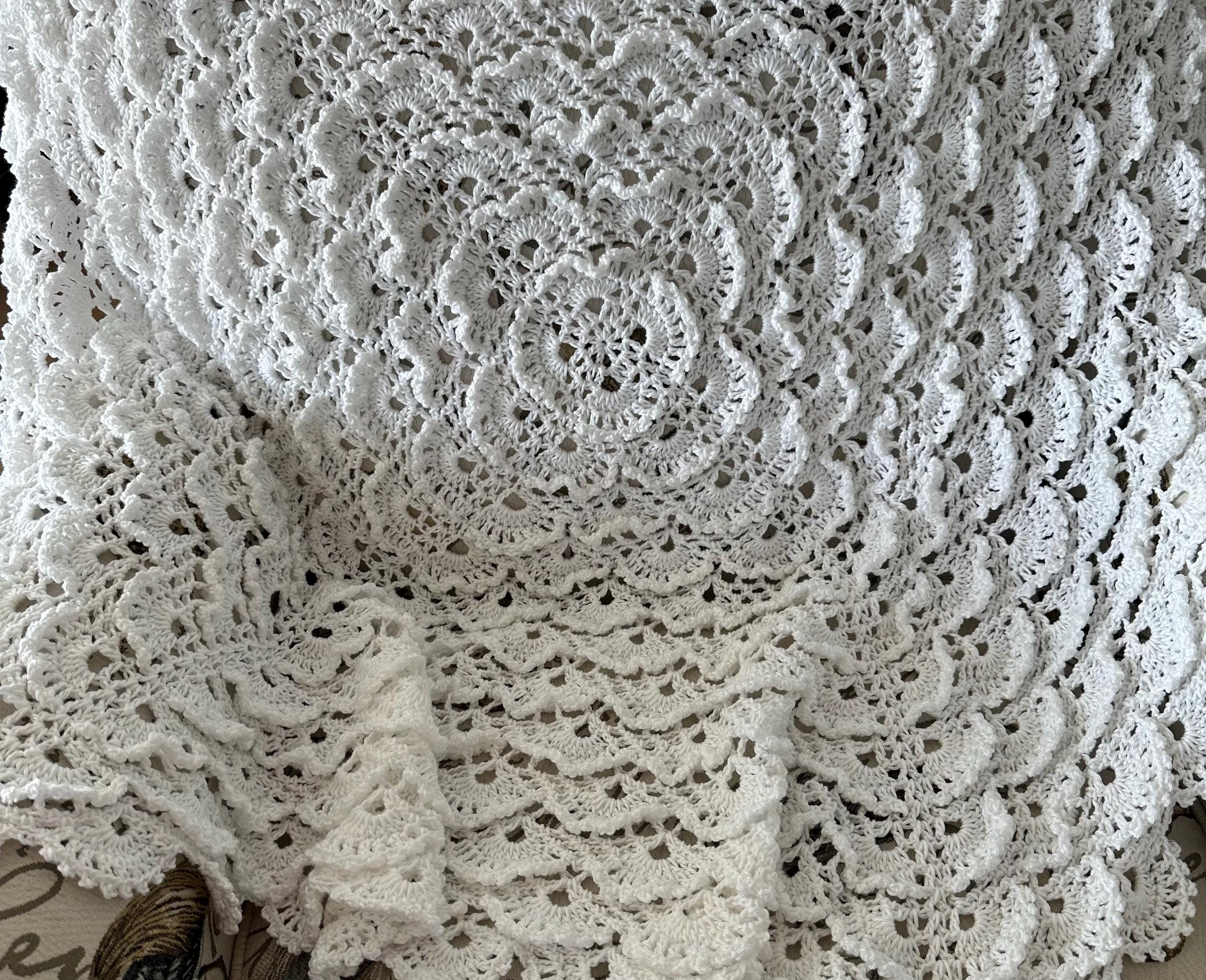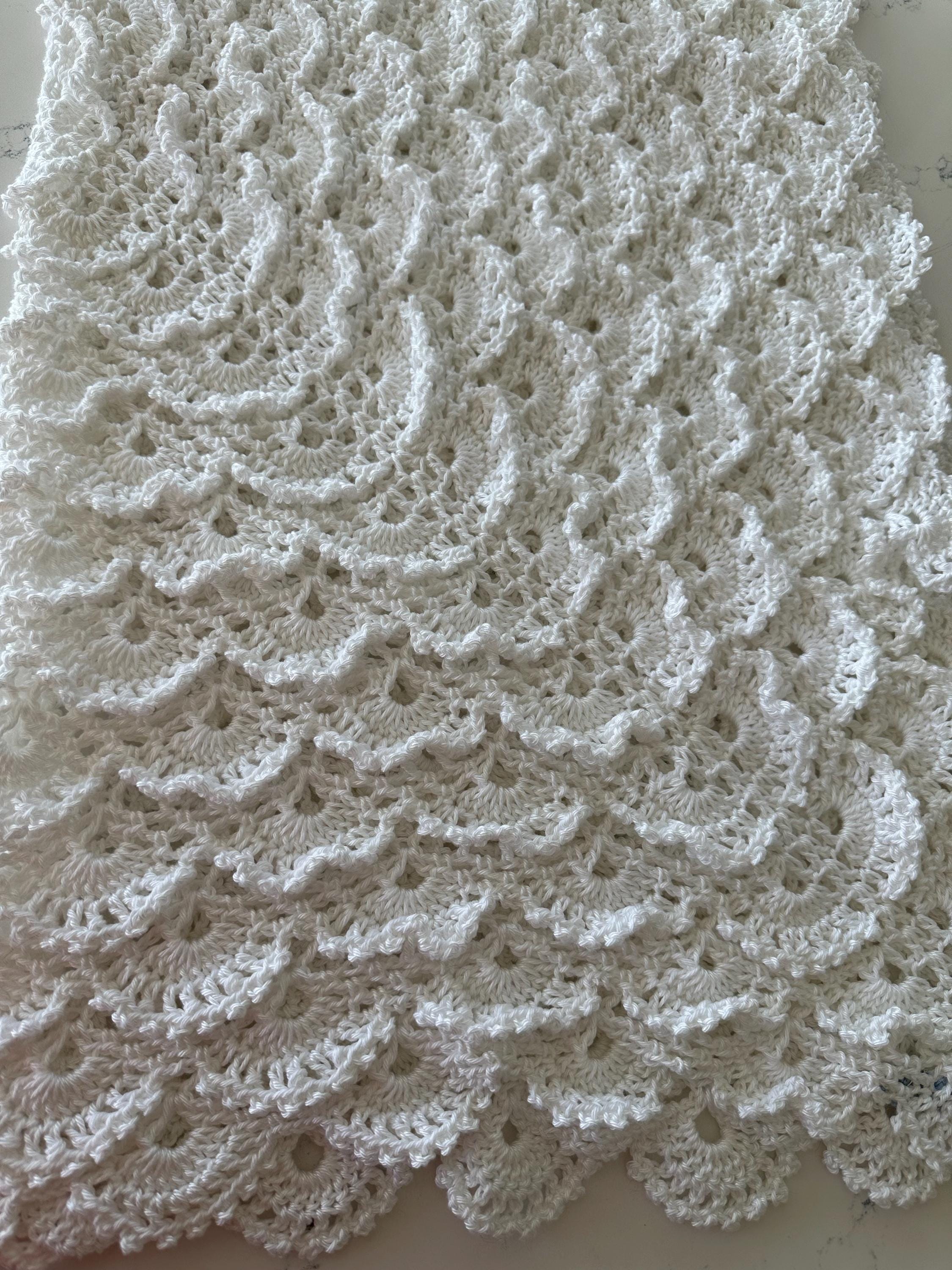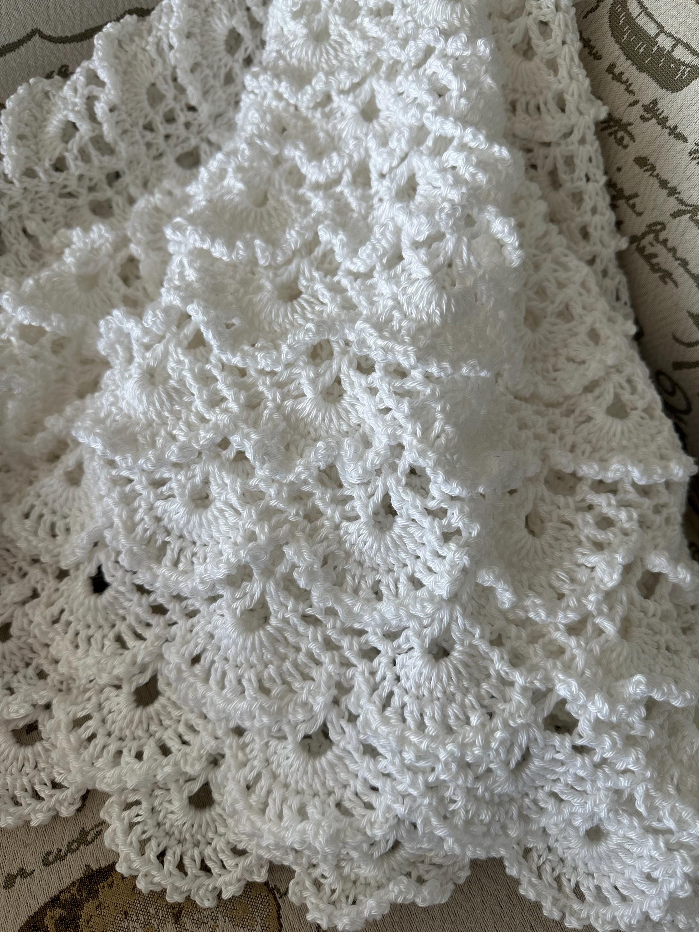 This keepsake is simply gorgeous! Very pretty in person. Over 2,000 picots (small crochet points). Stunning heirloom blanket. Perfect for Christening, Dedication, Baptism, or baby shower gifts.
