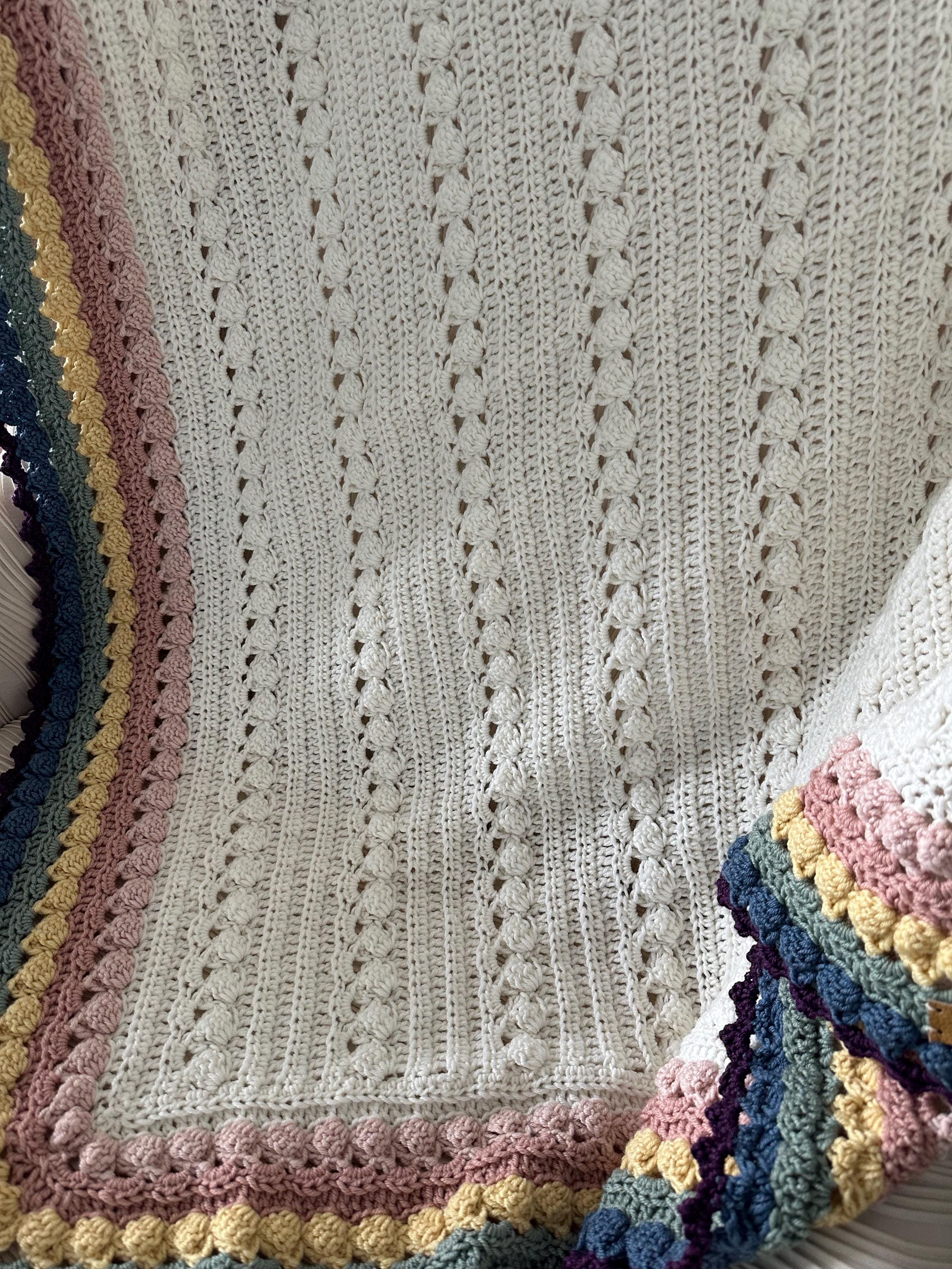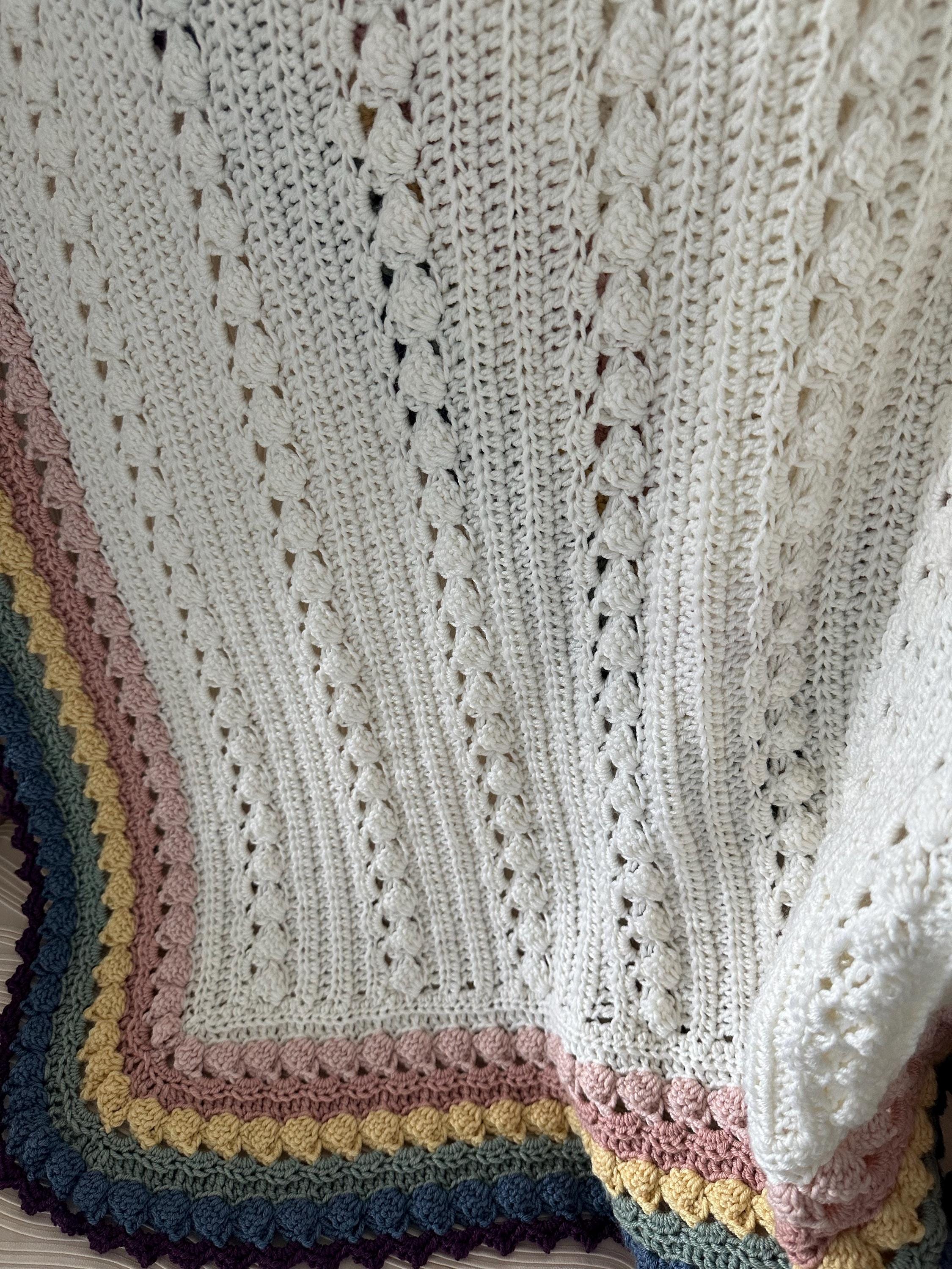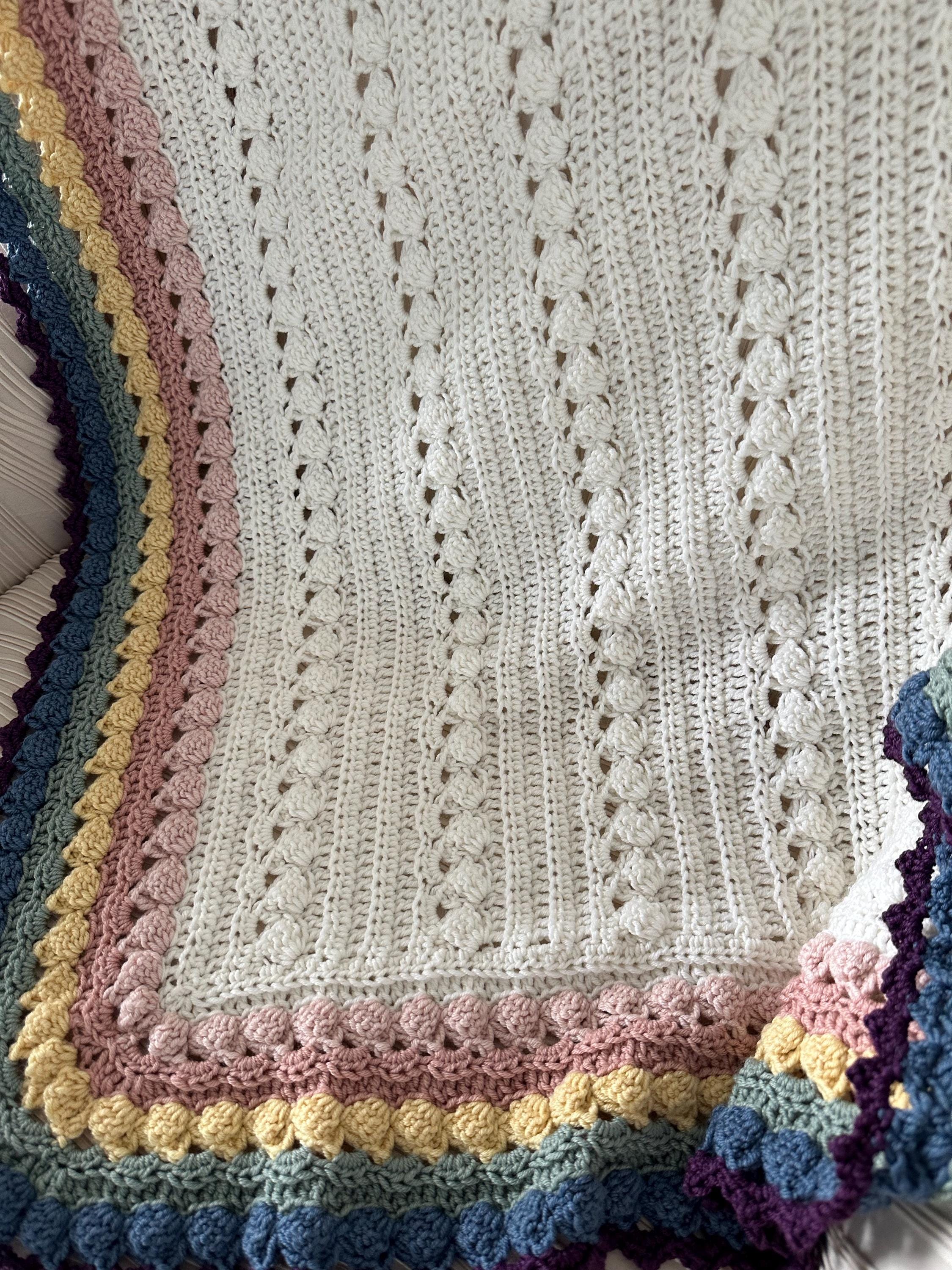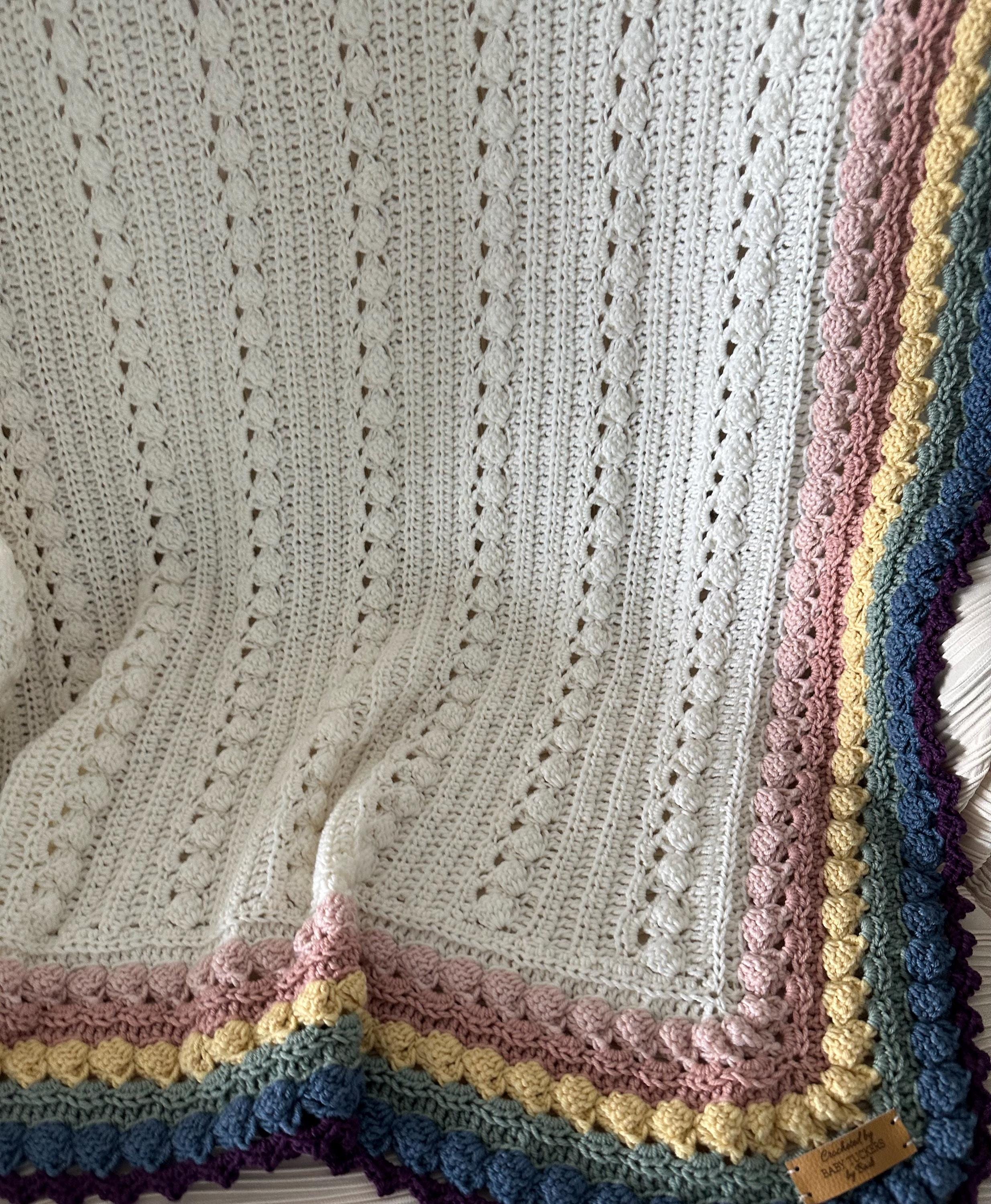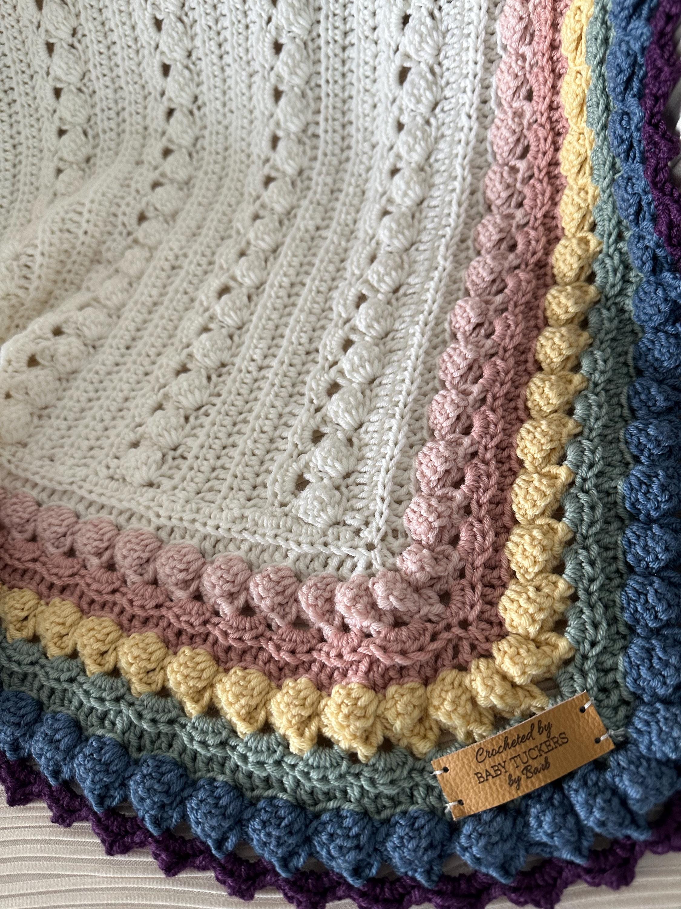 Super soft baby crocheted blanket in a wonderful NEW cable pattern. Original Baby Tuckers design.