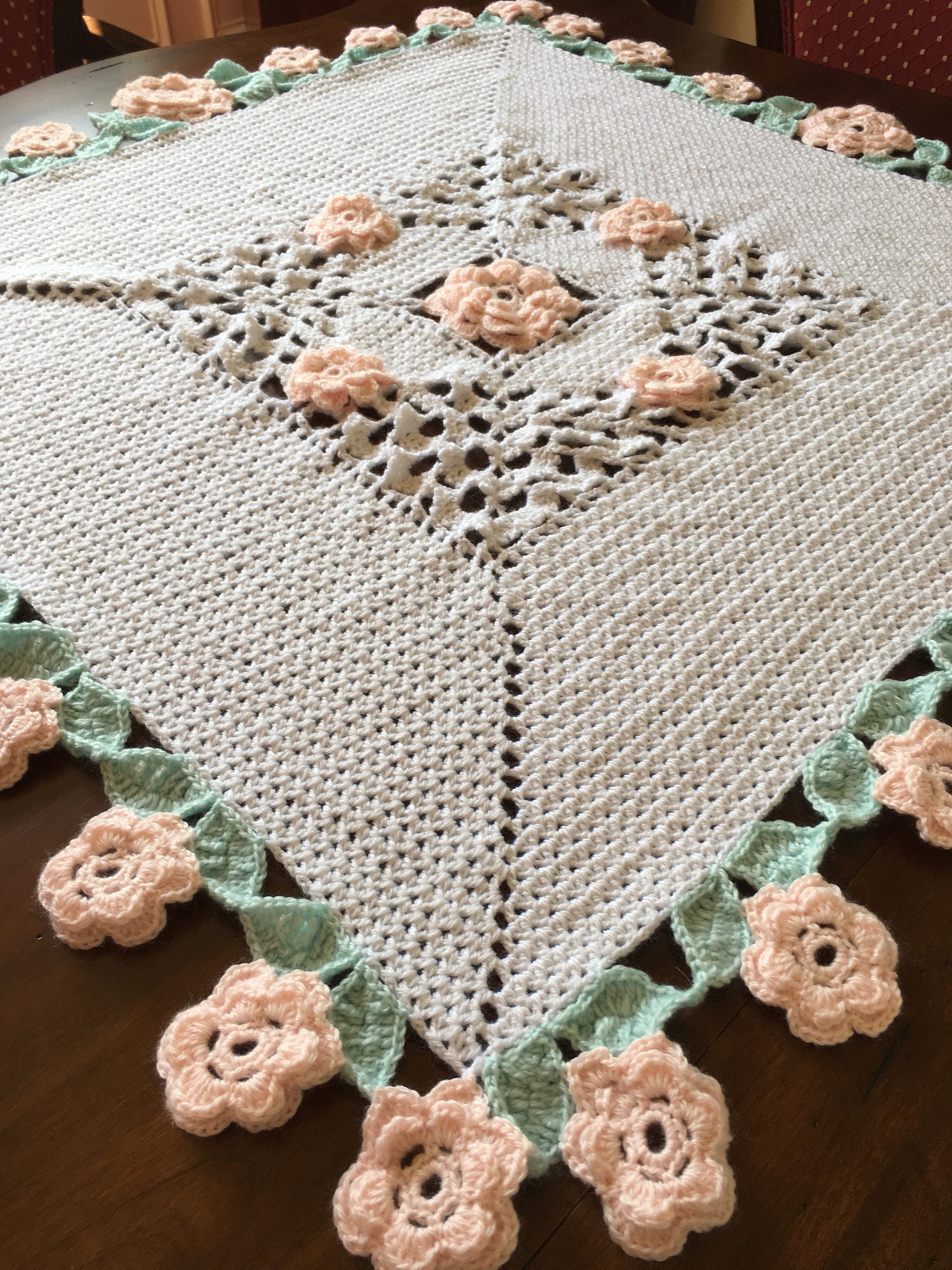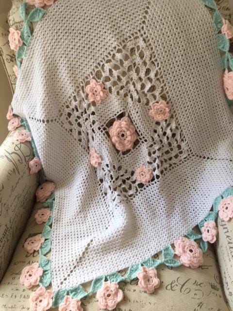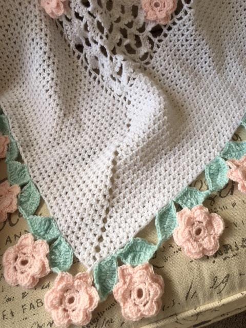 Handmade Custom Irish Rose crochet baby blanket in soft, quality baby yarn. This keepsake is simply gorgeous!